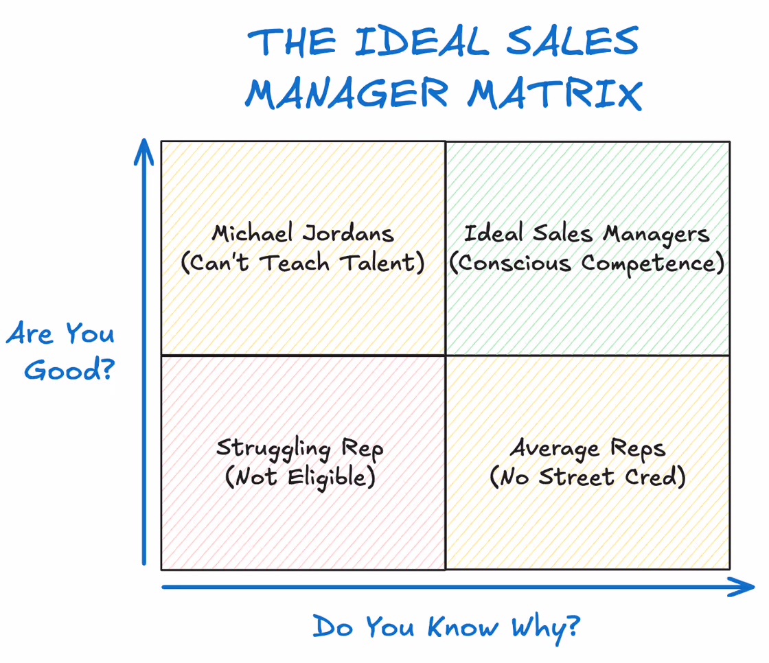 My legendary co-host Mark Kosoglow (led Outreach from $0-100M+ ARR) says that the best reps already have their tribe -- because there's nothing harder to overcome for a junior sales leader than lack of street cred across the floor.