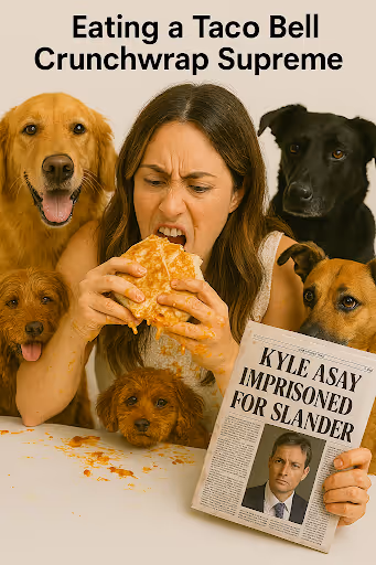 (BTW - I'm not judging. My first experiment with it was creating the above image of me eating a Taco Bell Crunchwrap Supreme, surrounded by dogs, with a newspaper headline of "Kyle Asay Imprisoned For Slander".)